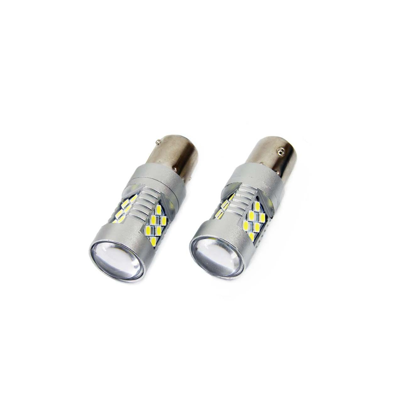 Set becuri auto cu LED CANBUS compatibil P21W BA15S 24 SMD 6.2W Alb 12/24V, destinat competitiilor auto sau off-road