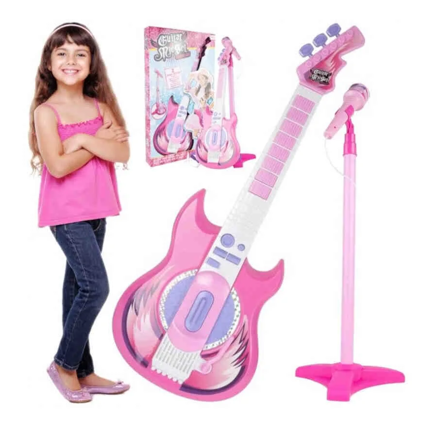 • Design atrăgător: Culoarea roz vibrantă și forma unei chitare electrice reale o fac preferată în special în rândul fetițelor.